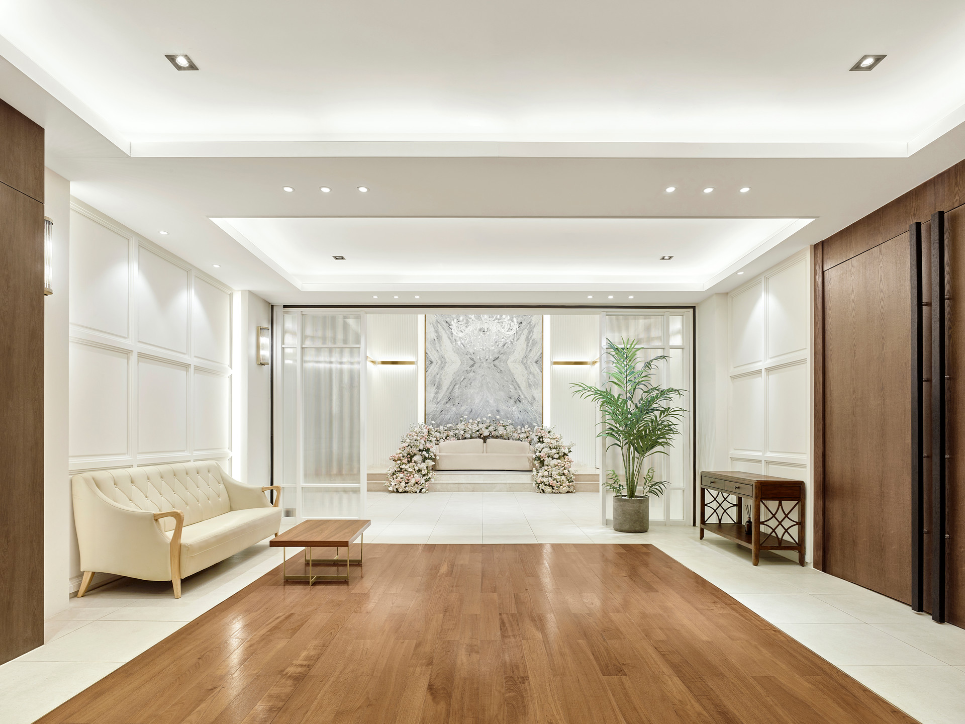 전체적인 색감을 화이트로 통일되어 있는 루클라비 라피네 신부대기실은 고급스러운 대리석 장식과 화려한 샹들리에, 은은한 조명, 화사하고 향기로운 생화 장식이 더해져 예식의 주인공인 웨딩드레스를 입은 신부님의 아름다움을 더욱 빛나게 해드립니다.